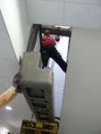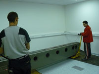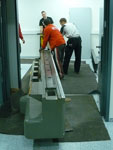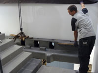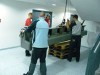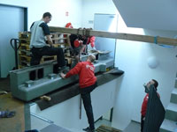 V brněnské pobočce Českého hydrometeorologického úřadu jsme stěhovali třítunový podstavec laseru do suterénu budovy. Podstavec musel být vzhledem ke svým rozměrům a váze spuštěn úzkou šachtou uvnitř schodiště po kladkách.